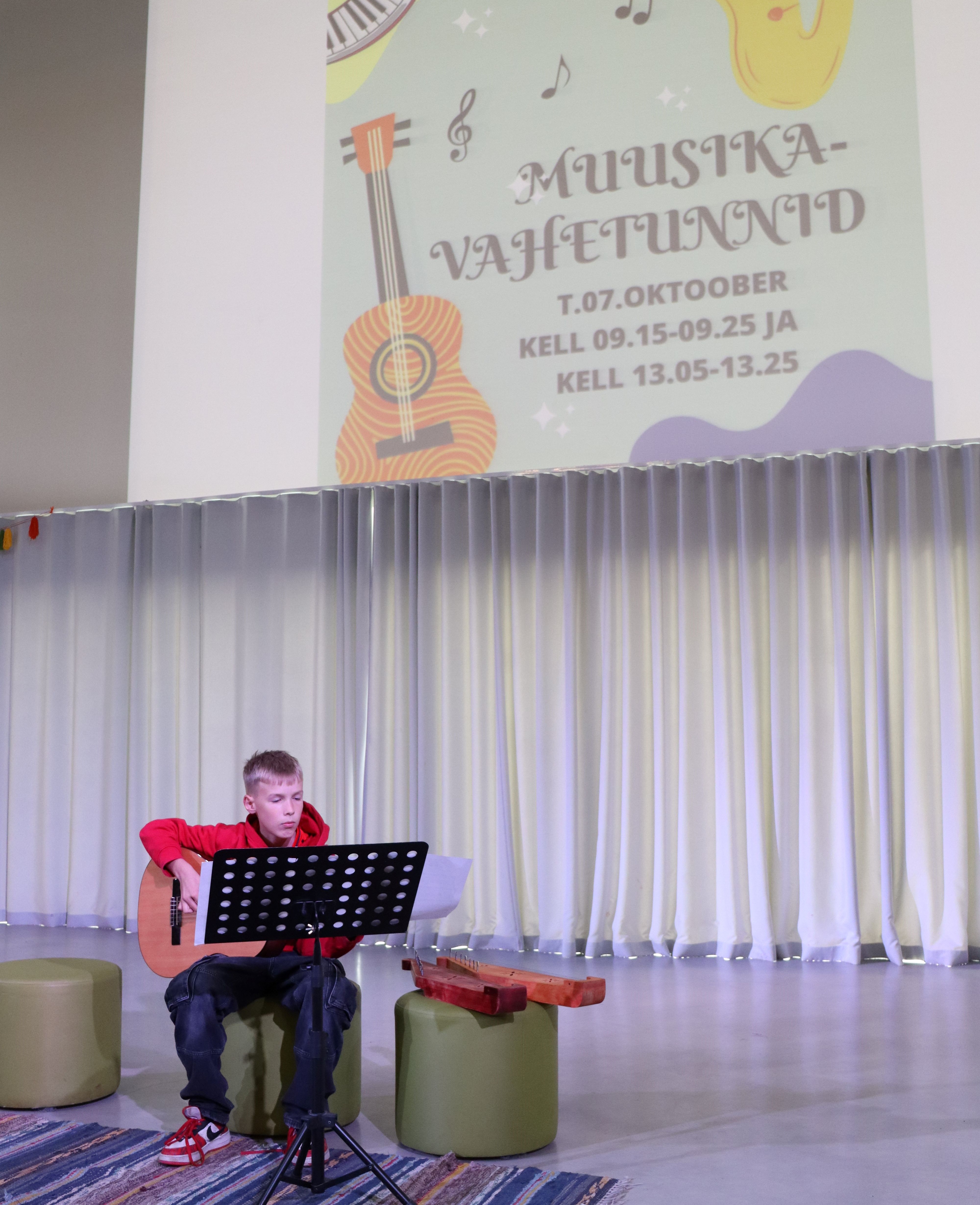 Muusikapäeva tähistatakse traditsiooniliselt 01.oktoobril. Täpselt selleks päevaks ei olnud meil võimalik koolikontserti majja saada, seepärast proovisime midagi uut - nimelt muusikavahetundi. Kõik õpilased, kes pilli oskavad mängida, said võimaluse end kirja panna ning muusikavahetundides esineda. Nii juhtuski, et kuulsime klaverimängu Gretely, Laura ja Sofia esituses ning tänu Villemile saime osa kitarrimängust. Kristjan võlus meid ksülofonimänguga ja Carolyn, Minna-Marii, Lilli ning Eliisabet mängisid imeliselt kannelt. Aitäh kõigile esinejatele!
