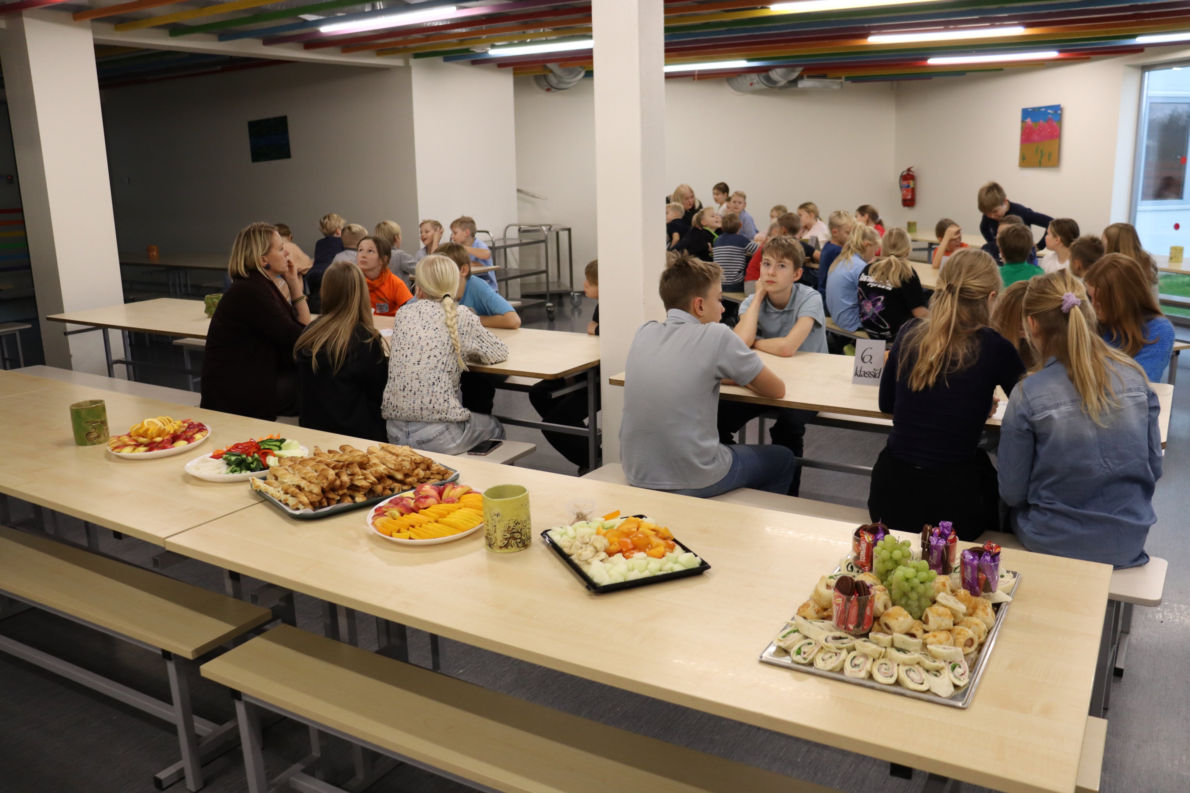 Kõik osalejad said rinnale nime ja klassiga kleepsu. Alustasime tutvumismänguga, seejärel istus iga aastakäik omaette laua taha ning kirjutas ajurünnaku käigus üles kõik põnevad mõtted, mida teinekord kolme kooliga koos teha võiksime. Nagu igale suurele kohtumisele kohane, sõime ka meie ühiselt kaetud laual olevaid maitsvaid palu. Õhtu sisse mahtusid veel mõned vahvad mängud ning Vääna-Jõesuu õpilasesinduse poiste poolt koostatud kooliteemaline viktoriin Kahoot keskkonnas.