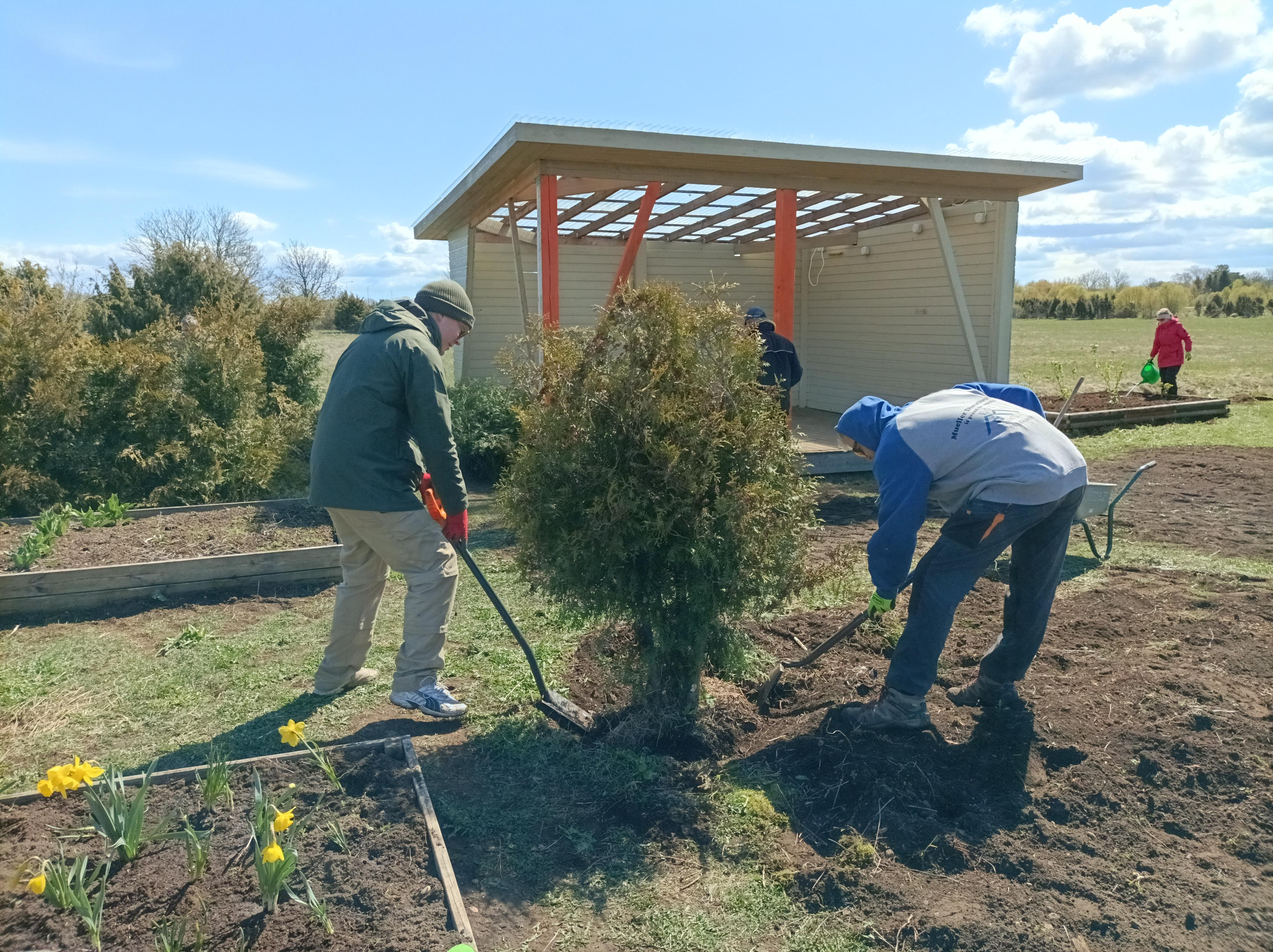 Teeme Ära talgupäeval paistnud soe päike aitas kõigil talgulistel palju ära teha. Meil ka. Lisaks päikesele oli Muraste kooli juures kohal ka mitukümmend vabatahtlikku abilist. Kinnitust sai, et koostöös peitub tõesti suur jõud. Kõik, kes meie paesele pinnasele on püüdnud midagi istutada, teavad, et lisaks füüsilisele jõule on vaja ka tahtejõudu. Ja seda meie kooli juures oli. Seda jõudu. Ja koostööd. Ja nalja. Ja rõõmu koos tehtust. Peenrakastid, mis pärit kooli algusaastatest, said ümber korraldatud. Sünnipäevakingiks saadud marjapõõsad istutatud. Elupuud leidsid uue koha, et õuesõppeklassi ümber tuul nii kõvasti enam ei puhuks. Lillekastides on taas värve. Suured paekivitükid muruplatsil leidsid parema paiga. Staadionimuru on riisutud ja Muraste teeäärtest palju prügi kokku korjatud. Töötegijad said kõhutäiteks Julia tehtud talgusuppi ning Kaire küpsetatud talgukooki. Aitäh kõigile panustajatele, kes laupäevasel päeval tulid ja tegid palju tööd! Koos jõuab alati rohkem.